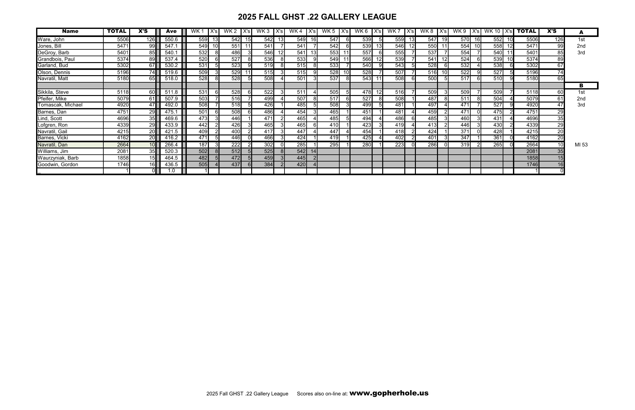 The 2026 Winter 22 Gallery League will start Monday, January 12th, 2026. The first round starts at 4:30PM. The 22 Gallery League will also shoot on Tuesdays at 4:00PM. See League calendar for the current schedule.