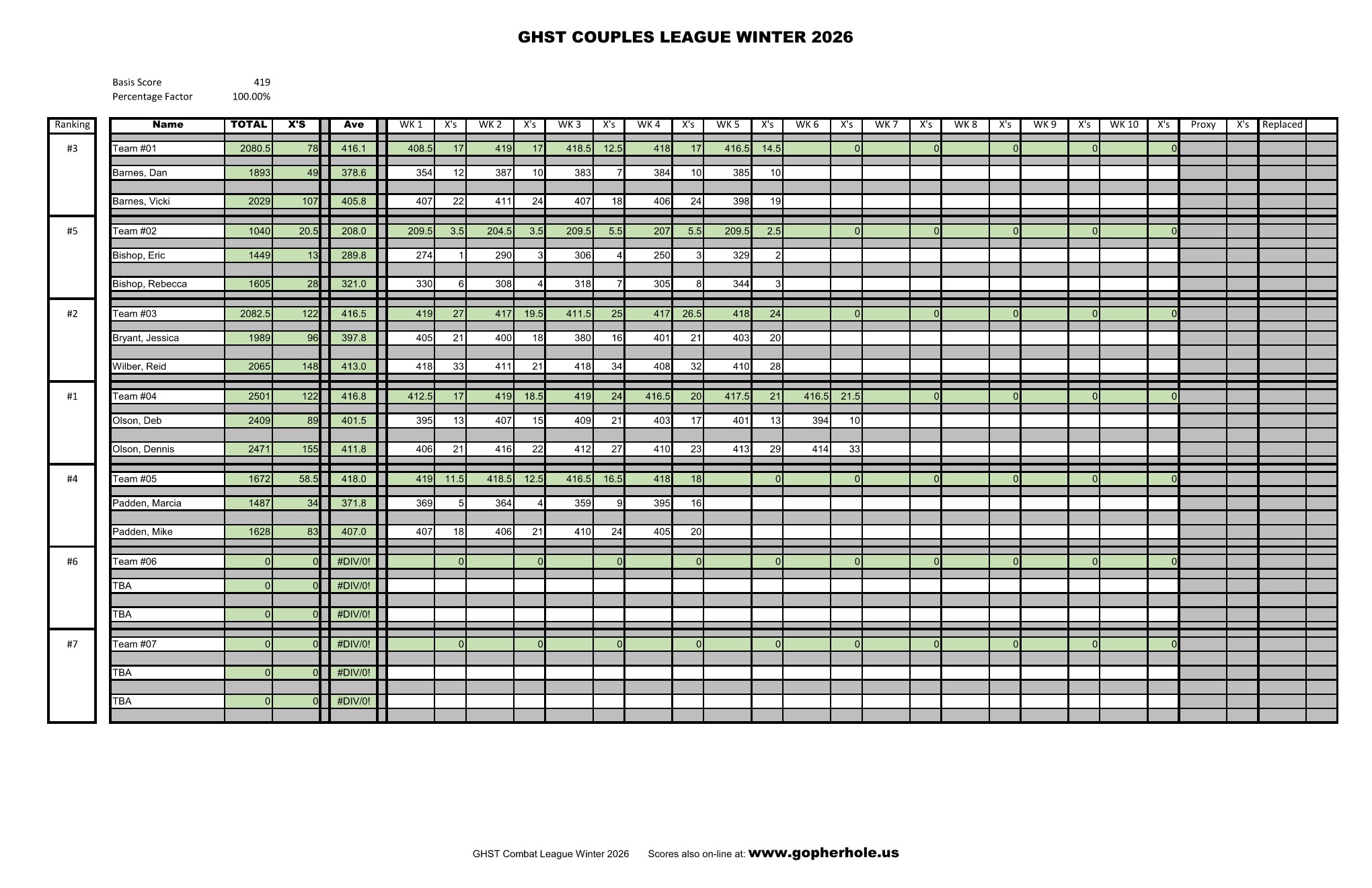The 2026 Winter Couples League started Thursday, January 15th, 2025. The first round starts at 6:00PM. See League calendar for the full schedule. The assembly area for this League is classroom 1.
